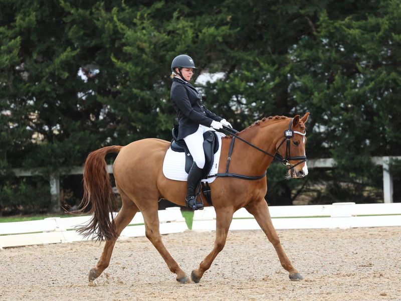 Very comfortable and happy trail riding in any environment. Dressage and will also still jump anything in the lower levels.