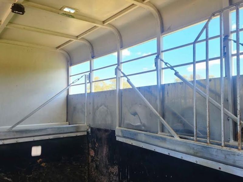 2012 FK FUSO With a near new $100k body for 10/11 horses suited to Racing and Camp Drafting in fact all horse sports as its safe and strong built to take a full day competion horses with space at 71.5 centre divides 15mm Rubber floor marine glued over rust proofed checker plate plus kick and strike rubber walls with Stainless steel anti rub Tail plate. Dual Hydraulic elec switch ramp, anti scramble bar in 1st bay doubles as a tack rail. Full rubber adjustable dividers, Head dividers, 10 Air Vents, Tyres 85 % min. 3 Tack Boxes attached to chassis, Fuel Tank Up graded to 400 litres Current COI done by the Mitsubishi mechanics. Drives beautifully. Sleeper behind seat. SPECS Speakers2 Speaker Stereo Safety & Security Airbags Driver Seatbelts Lap/Sash for 2 seats Pretensioners 1st Row (Front) Vehicle Control ABS (Antilock Brakes) Hill Holder Security Central Locking - Remote/Keyless Comfort & Convenience Air Conditioning Air Conditioning Driving Cruise Control Illumination Map/Reading Lamps - for 1st Row Front Storage Storage Compartment - Centre Console 1st Row Storage Compartment - Overhead Console 1st Row Door Pockets Door Pocket - Drivers Side Drink Holders Cup Holders - 1st Row Lights & Windows Power Windows Front only Windows2 Laminated Windscreen Wipers Intermittent Wipers - Variable Interior Cloth Trim Seating Front Row Seats Air Seat - Driver Instruments & Controls Gauges Tacho Exterior Mirrors Electric - Heated Body Cab Tilt - Manual Electrical Power Sockets24V Socket - Auxiliary x1 Fuel Fuel Use Reduction Engine - Idle Speed Control Steering Steering Column Tilt and Reach Brakes Engine Exhaust Brake Operation Air/Hydraulic Suspension Type Suspension - Leaf Wheels & Tyres Spare Wheel Steel Rim Only Specifications Overview Generic Gear Type Manual Generic Induction Turbo Generic Fuel Type Diesel Generic Drive4x2 Steering Recirculating Ball Number of Airbags1 Warranty & Servicing Warranty in Years3 (yr) Warranty in Km150000 (km) Warranty Anti Corrosion in Years3 (yr) Regular Service Interval in Km30000 (km) Regular Service Interval in Months12 Engine Engine Type Piston Engine Code6M60-9AT1 Number of Cylinders6 Engine Configuration In-line Engine Size (cc)7545 (cc) Engine Location Mid-Front Engine Description7.5 Engine Full Description7.5DT Cam Overhead Cam Number of Valves per Cylinder4 Compression ratio16 Power177kW @ 2500rpm Torque745Nm @ 1400rpm Induction Turbo Intercooled Fuel Delivery Direct Injection Fuel Type Diesel Fuel Capacity200 (L) Method Delivery Electronic Sequential Manufacturer Fuel Delivery Common-rail Direct Injection Emission Standard Euro 5 Sample Engine Number6M60###### Engine Cycle4 Stroke Transmission & Driveline Number of Gears6 Gear Type Manual Overdrive Gear Location Centre Console Manufacturer Gear Type Fuso Drive4x2 Dimensions & Weights Wheelbase5210 (mm) Length8645 (mm) Width2500 (mm) Height2670 (mm) Track Front1810 (mm) Track Rear1665 (mm) Front Overhang1135 Bumper To Back Of Cab1990 Gross Vehicle Mass10400 (kg) Gross Combination Mass20000 (kg) Kerb Weight3610 (kg) Wheels & Tyres Front Rim Description17.5x6.75 Rear Rim Description17.5x6.75 Rim Material Steel Front Tyre Description235/75 R17.5 Rear Tyre Description235/75 R17.5 Other Country of Origin JAPAN Badge1024 Doors2 Seat Capacity3 Wheelbase Configuration Long Wheelbase Manufacturer Wheelbase Configuration Long Wheelbase Body Style Cab Chassis Manufacturer Body Style Cab Chassis Generic Body Style Chassis Model CodeFK61FL1RFAC Electrical System Voltage24V V Facts Class Heavy Ridged.