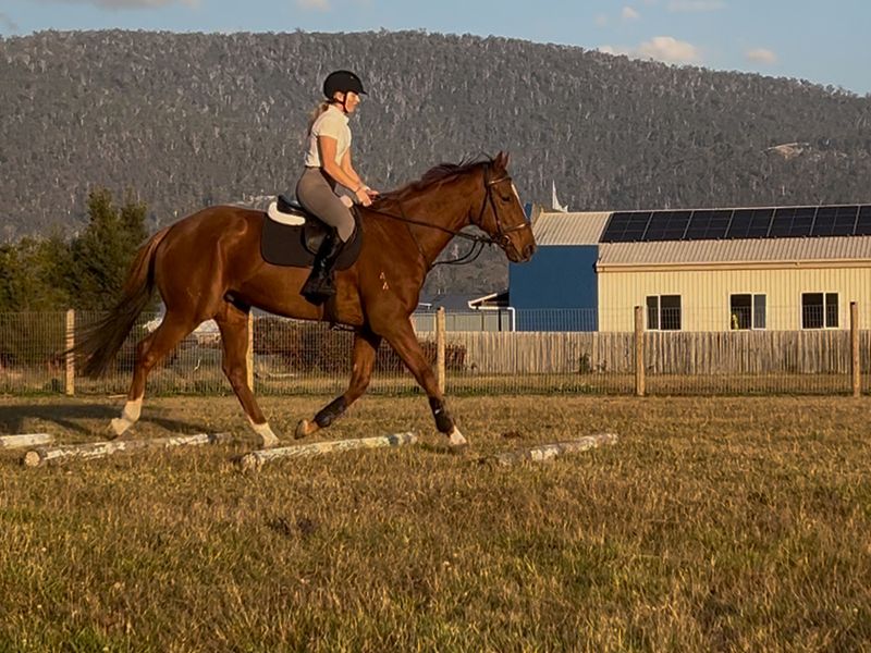 Has mainly done flat work and poles and some small jumps, will need confident / experienced rider to continue his education.