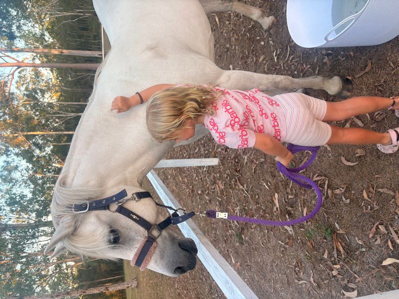 On the ground, Luigi is exceptionally child-safe. Kids can catch him, lead him, bath him, pick out his feet, and handle him with no issues at all. He will stand tied up all day and has beautiful manners.