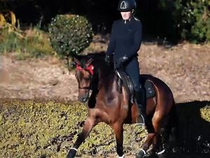 Beautiful on the flat, works in a lovely soft outline, and has a super trot and canter. Soft snaffle mouth, Johnny , as he is known at home is very easy to handle, and an absolute pleasure to have around.