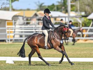 This pony is so much fun to ride and train , honest and a great mover with a very willing attitude and loads of potential. He’s well-schooled for his age, has been out and about ( current Champion Led RP at Toowoomba Royal 2025 ) and shows a competitive edge that would suit a rider keen to do showing at a Royal and National level , dressage or inter-schools.