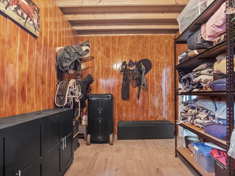 • Huge 6m-high machinery shed with 3 stables, tack room, work area, 2-phase power & separate power meter