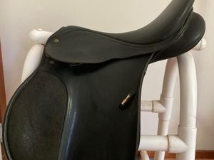 We bought this saddle for $600 almost brand new I have never had a fall or accident in this saddle,doesn’t fit my new horse has always been kept inside covered and cleaned regularly.Interchangeable gullet currently has a blue gullet can come with a yellow gullet as well for a extra $10.Sixteen inch