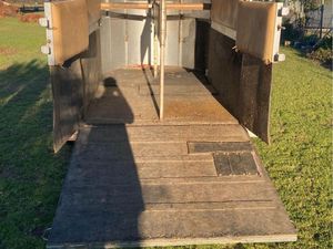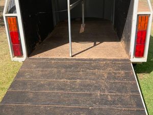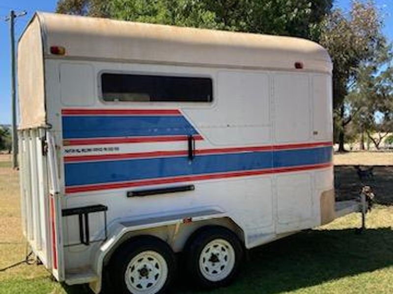 2HSL extended front. Registeted until Feb 2025. Great float. Well built and well maintained, marine ply floors, stallion divider, 2 pop-up air vents, side windows, slide-off storm cover, internal light, fully removable divider. Outside tie-up anchors and feedbin attachments. Tailgate and all floors in very good condition. Tows beautifully and horses travel happily. I had this float made and have owned it ever since.