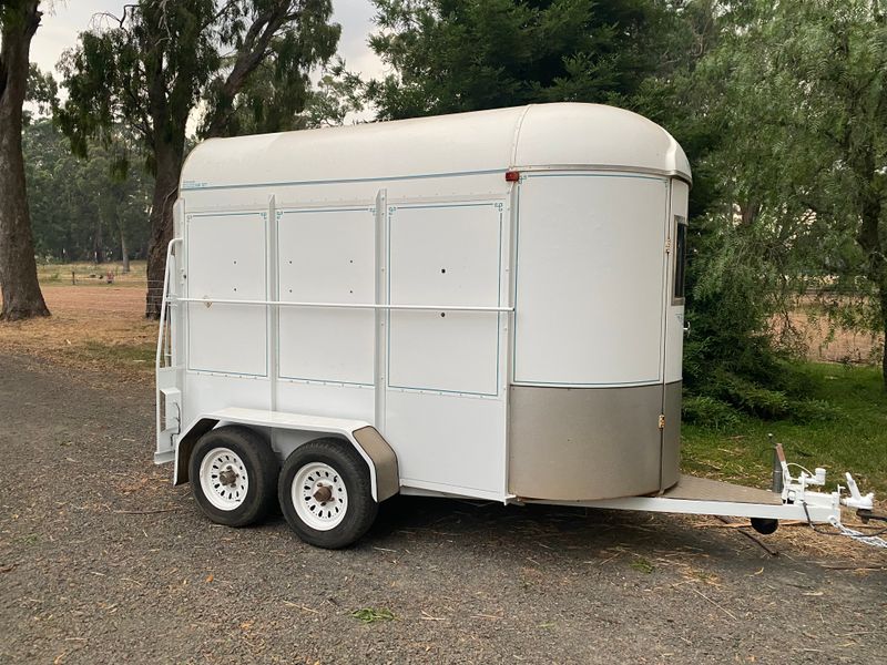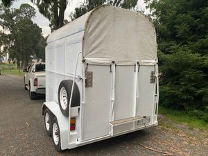 Quality Aussie built float. Recently refurbed with new tailgate, double floor and metal sides. Rubber to walls, floor and tailbags. Bays 6’3 long. Breaching gates, head divider, storm cover. Internal tackbox.