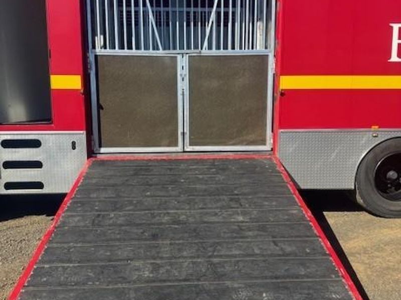 - Configuration: 3-bay side load at front with 7-horse rear load