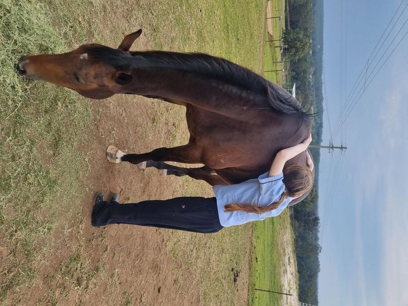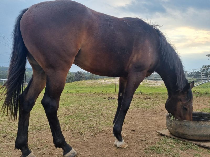 $1500 ono 3 year old bay thouroughbred gelding. perfect 1st horse. Professionally trained was spelling until very recently. Began groundwork again with 14 year old training him for show jumping.