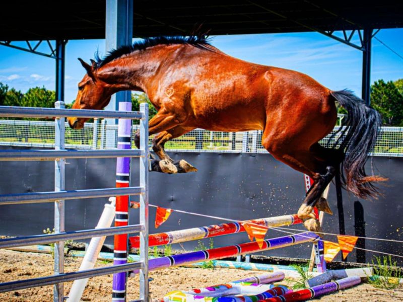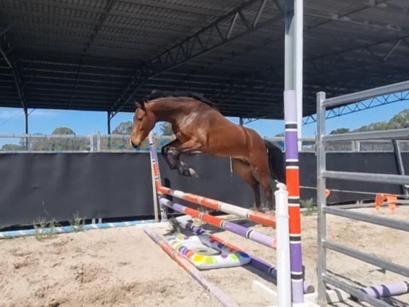 Standing Approx 16.2, with his knees to nose technique he would make a incredible showjumper - he’s very careful, has not hit a pole when we have free jumped him! We have videos of his first free jumps.