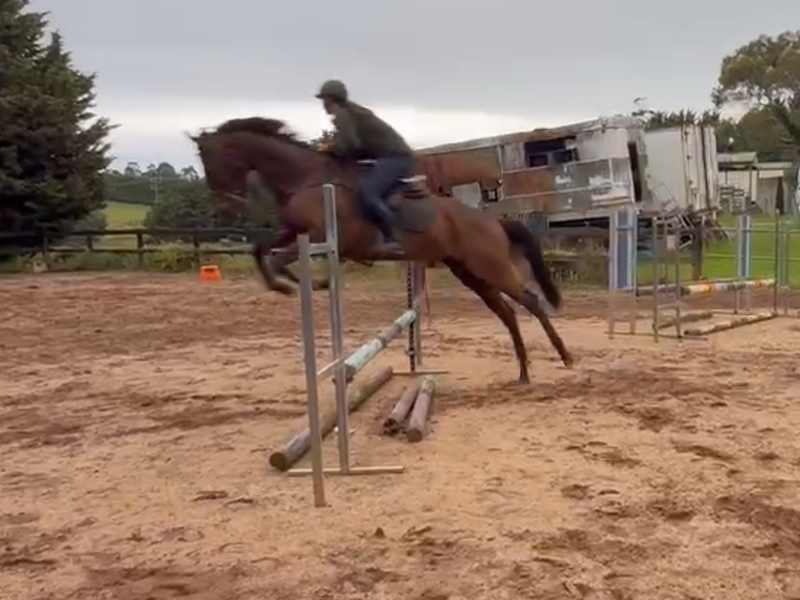Artie has had a few rides since being off the track and has proven he wants to please his rider. He is still very green but has shown improvement from when we first got him. Artie is easy to handle and a pleasure to have around with his friendly personality. He can be hot and is forward going so he would not suit beginner riders. Artie would suit a confident rider looking to bring him up the levels in whatever they put him in, but he has especially shown an enjoyment for jumping.