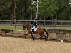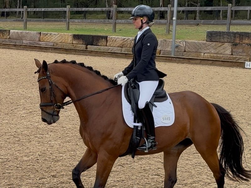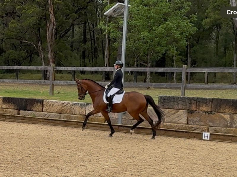 Mirabella Rose is competing medium/advanced dressage and can be ridden or handled by a professional or a child. She is easy to lead, respectful of your space, self loads into a horse float, can be led to her paddock whilst juggling a phone call and riding a bike or just following the ATV. Super easy going, Rose has the same level headed temperament as her Grand Prix sire Richmond H, who is by the legendary Rubinstein 1 out of a State Premium Weltmeyer Mare. Richmond H recently retired after 22 years of being competitive at the highest level of the sport. A good 10 years of competing Big Tour including international 4 star competitions. Combined with Olympic bloodlines of Rubinstein, Weltmeyer and Bloomfield farms imported stallion Sirocco, Rose has the striking beauty, correct conformation and elastic movement of her predecessors. This mare is obedient, light to the aids and a willing athlete. Born and bred at Mirabella and very much a part of the family. Sale to the best approved home only. Rose is welcome to stay in training at Mirabella while you learn the ropes of the higher level dressage work along the way. Working canter pirouettes, tempi changes and half steps. A quality, no fuss mare and a very easy doer.
