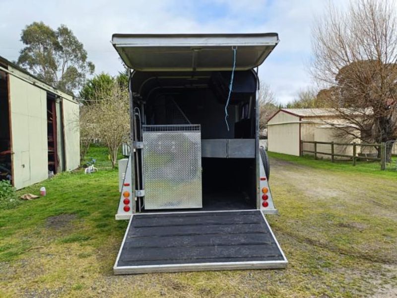 2016 2HAL separate living bunk beds pop up table fridge microwave, cowboy shower, gas bottle, water tank, cupboards, awning, 2 tack boxes one swing out, rug rack, solid wall with door. Many more features. Not used until mid 2018 so only  6 years use. Great float. 2 new tyres new deep cycle battery jockey wheel new struts on tailgate just serviced.  Reverse camera also  included but never set up.