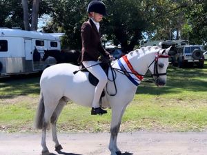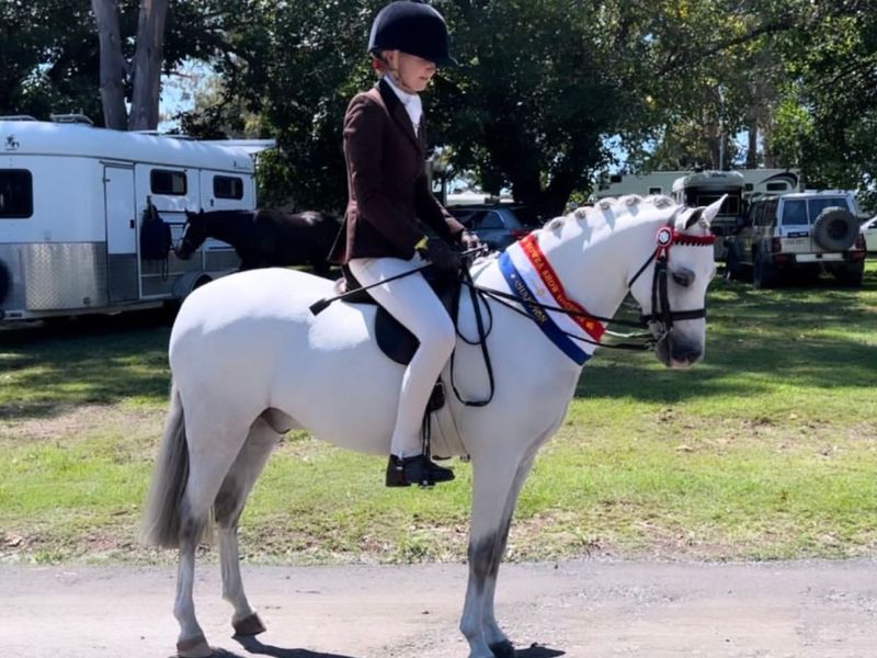 Has been shown for champions at ag shows in breed and open pony classes and was 4th Led at Sydney royal, but he prefers fun stuff!