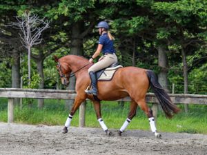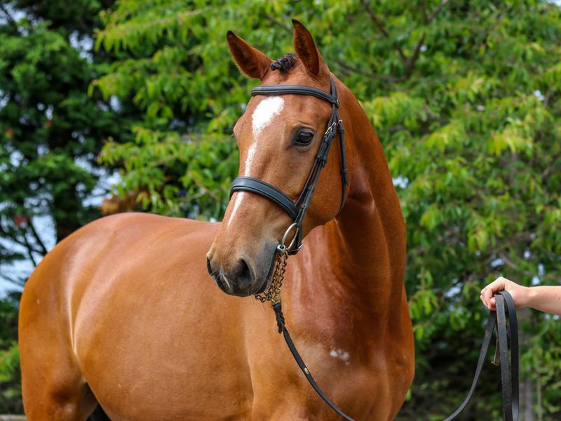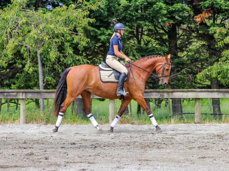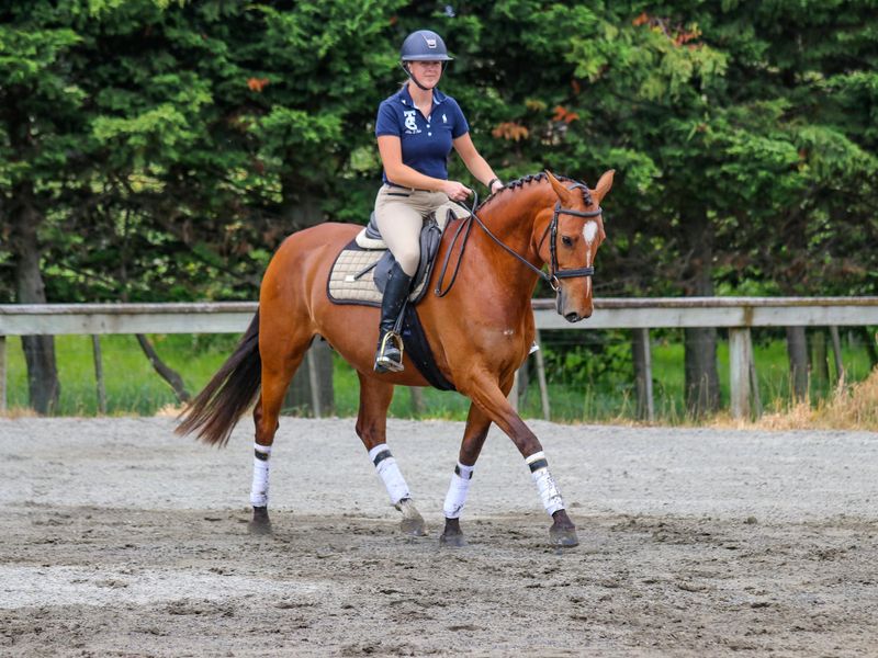 Amber has a lovely kind temperament that shines through her ridden work as well as her sweet personality on the ground. She has a good work ethic and a sensible brain that makes her an easily trainable youngster.