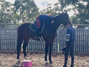 has been out to an indoor arena hire for his first ride off property and first time seeing an indoor where he behaved like he had been out all his life.