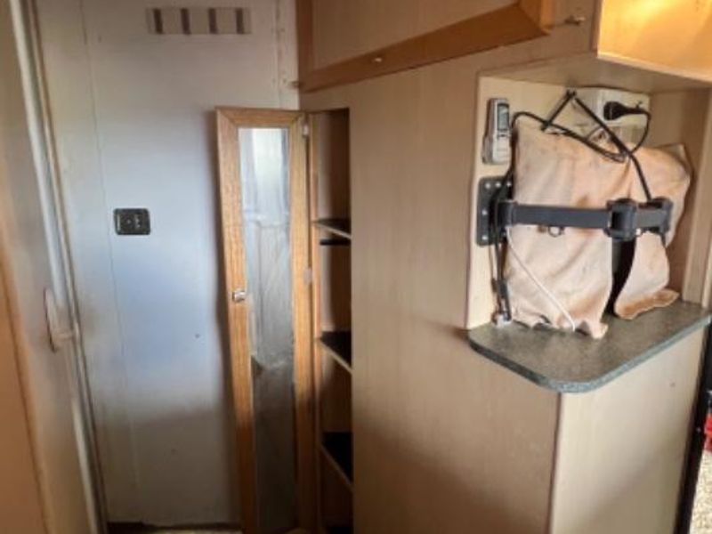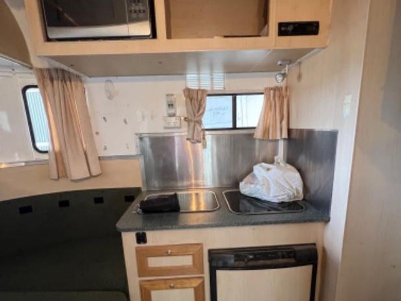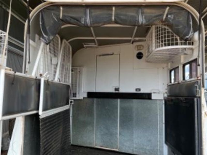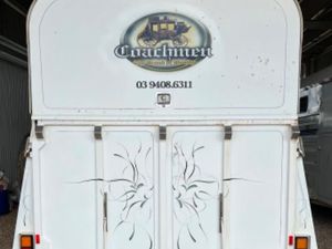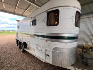 12v and 240V power,3way 90L fridge/freezer, Microwave, 2 burner gas stove,sink, gas Hot water system, and Radio CD sound system,TV, Combined Toilet and shower, double bed to table conversion,Huge overhead storage cupboard,multiple storage cupboards in living area,kitchen cupboards, full length mirror, lined ceiling, AC and heating system. 130L water tank, outside tap.Outside light over the door. Extra fold out single/double bed in horse area if needed.