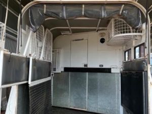2 horse angle, fully adjustable padded stallion dividers, dividers slide in to allow open living area in horse area, 4 sliding windows with fly mesh, 2 pop up vents, 2 whirley vents,huge swing out removable tack box, 2 saddles, float can close with tack box out, tack box has multiple hangers and baskets,broom and stable rack, privacy curtains for all windows, huge rug rack, storage cupboard, full privacy fly heavy mesh screen at end of horse area for when tailgate is down.