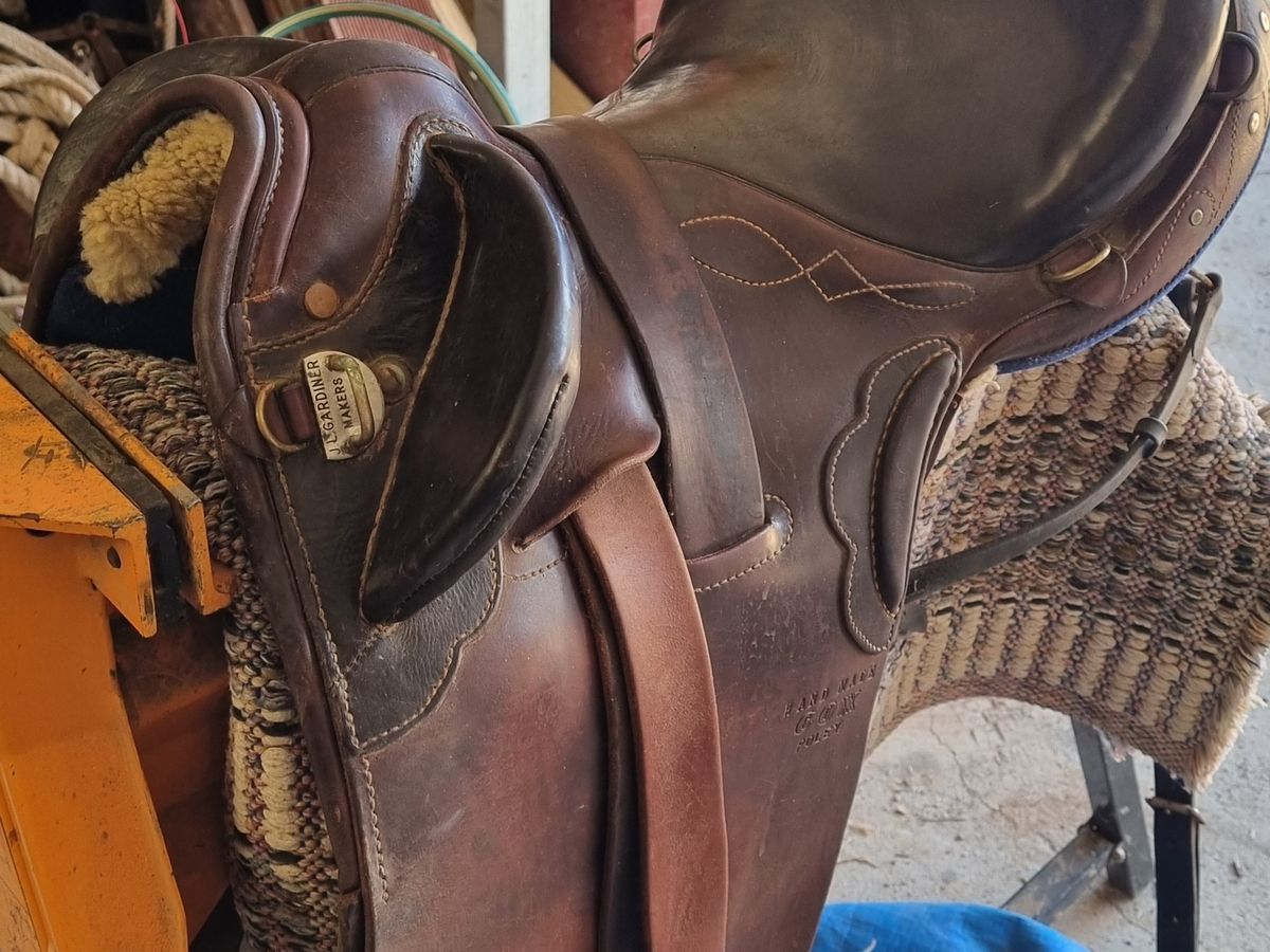 Cox Poley made by Gardiner saddlers. Has breast strap, surcingle, flank girth and carry bag. Good condition.