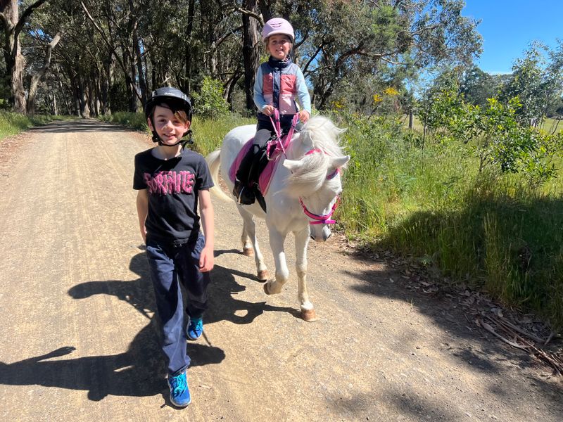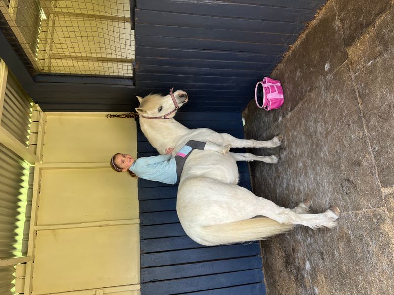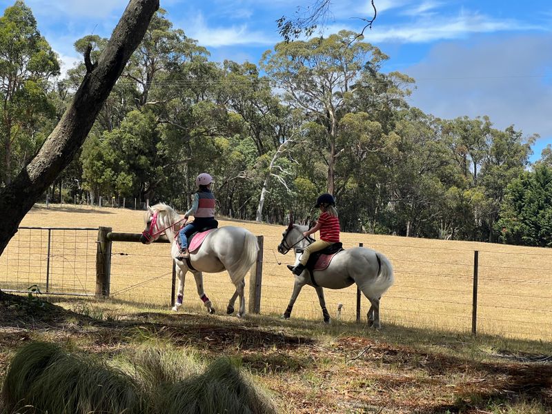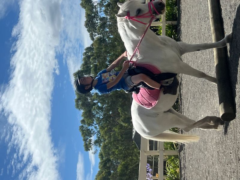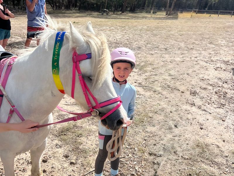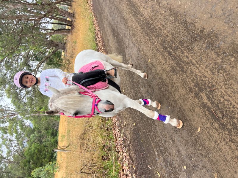 We've had Millie for nearly two years and it's with a heavy heart that we have decided to sell. She's been a perfect first pony in teaching my daughter to walk, trot and canter off-lead and on the bit. She has regularly attended pony club and I couldn't fault her in any discipline from mini show jumping & cross country to gymkhana, barrel racing and even playing games with the sack race and "whats the time Mr Wolf". She's been in water jumps, heavy traffic, chaotic animal environments and had various children climbing all over her. She's had as young as 3yo children ride her on-lead and she's had grown adults school her and get her working properly on the flat. She's been hacking out with my 6yo and other horses and doesn't get phased by anything either leading the way or following behind. She is easy to float, trim, bath etc. Her only vice is she's a bit girthy and she needs a muzzle during summer on the spring grass as she can be prone to laminitis. She'll come with everything... saddle, multiple bridles (everyday and show bridles/browbands) , multiple winter and summer rugs, travel gear, boots etc. Plus I have riding hats, boots, back protector, gloves if needed. She will only go to a loving and knowledgeable home so please consider that when enquiring.