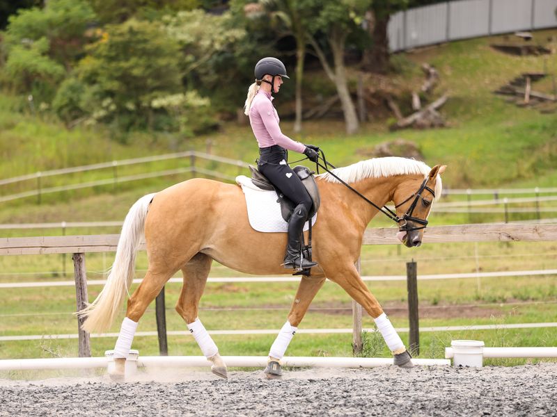 Yoshi is an extremely sweet person-always wants to be around people and always happy to see you. Never marey, not aggressive with other horses nor does she get overly attached. She is easy to handle, has happily loaded onto every truck or float I’ve put her on and has settled easily into every new environment I’ve had her in.