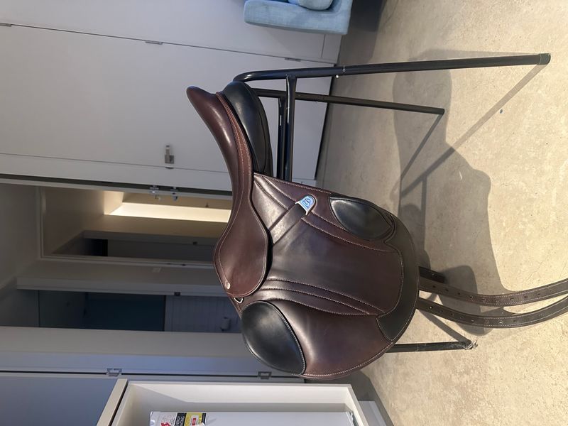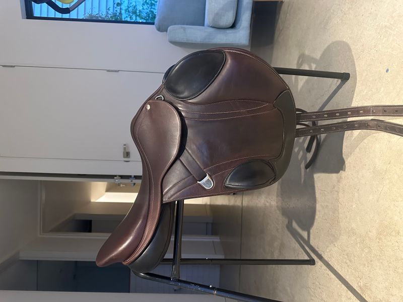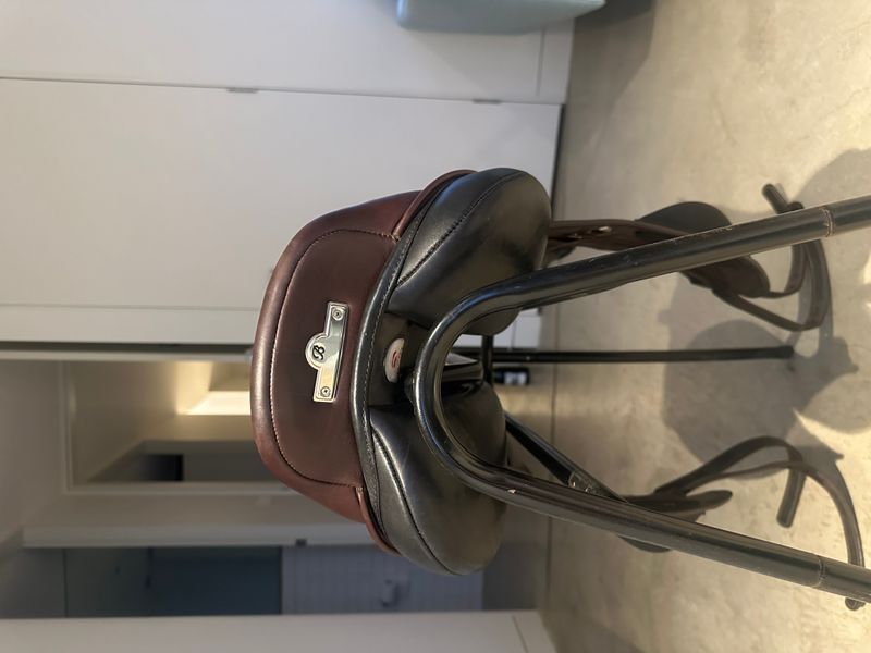 Monoflap saddle with adjustable stirrup bars and moveable knee blocks (also interchangeable if you prefer brown). We purchased this saddle in 2021 and it had 2 years of light use then has mainly been in storage since. Apart from general wear it’s in fabulous condition.