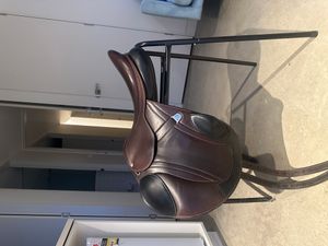 Comes with black Free Jump soft up pro stirrups and collegiate girth.