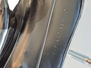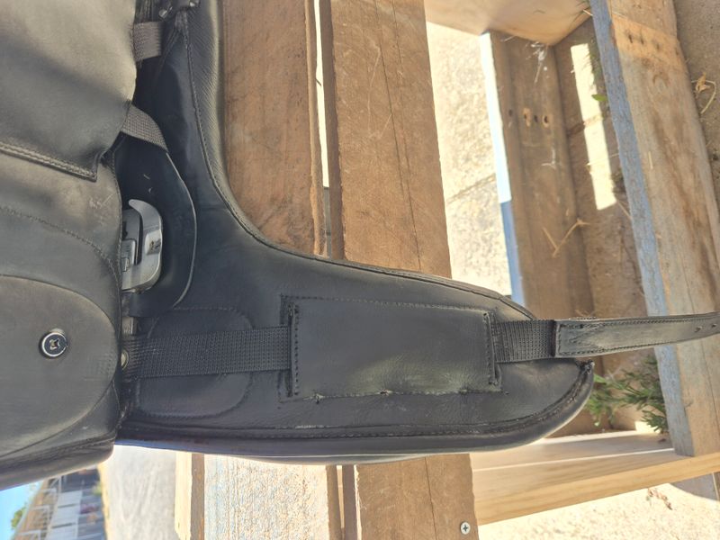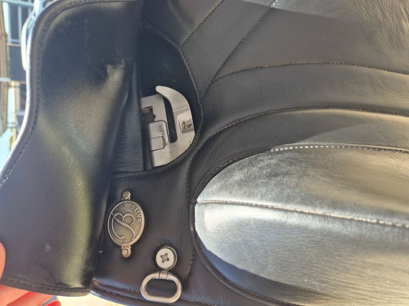 Extremely comfortable black leather saddle. Well maintained saddle always stored with a cover on inside. Never had a fall or been dropped. Girth points are in excellent condition, no scratches or marks on the saddle. I have taken the bates cantle plate off as it was engraved with my name.
