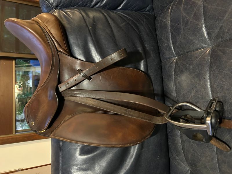 - Can come fully mounted with stirrups leathers (130cm) and stirrups (12cm) and a woollen girth