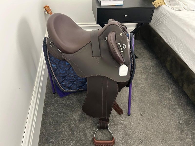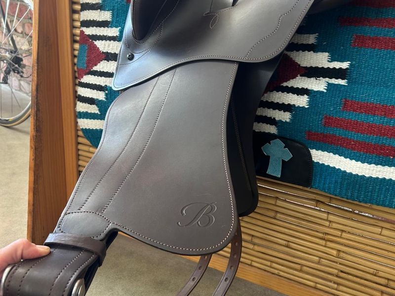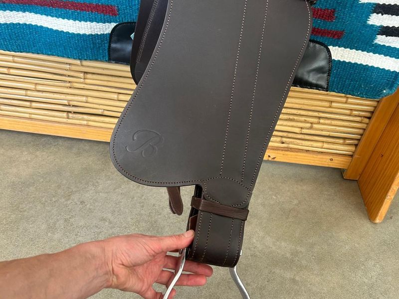 Leading technology offers unsurpassed fit, comfort, and performance for what you demand in a stock saddle for your horse. Ideal for trail riding, breaking, or working on your station. The Bates Kimberley provides instantaneous comfort for you in the saddle all day with poley knee pads, a traditional stock stirrup bar, long double girth points and a swinging fender that moulds to your leg and moves with you and your horse.