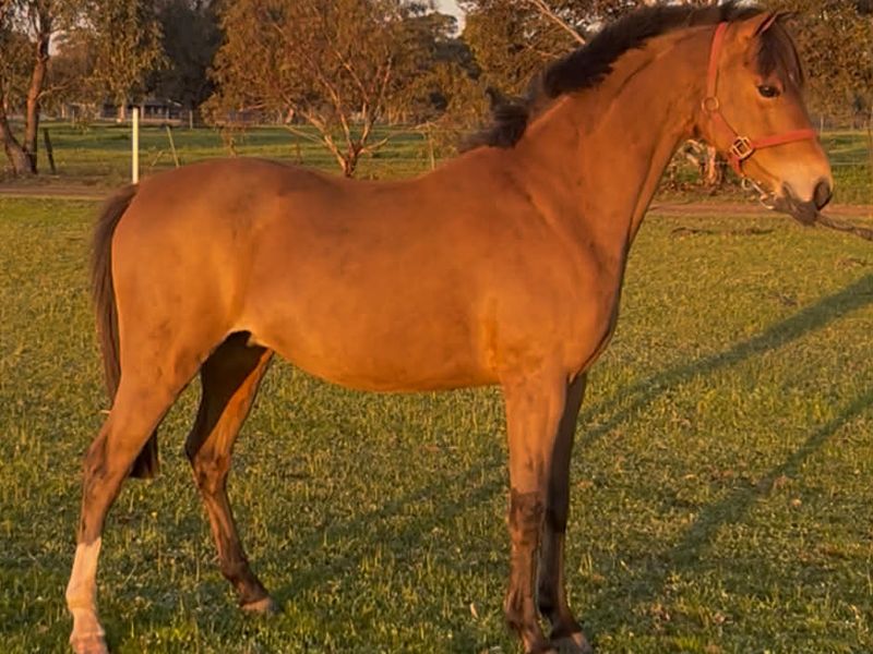 12h bay gelding reg Apsb mouthed/long reined has been sat on and turned out for a break.