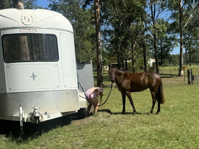 Coco has been to shows and ties to the float all day perfectly but I just haven’t had the time to campaign her in any led classes.