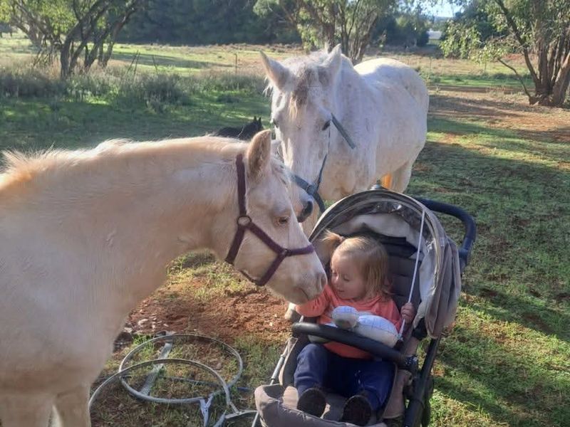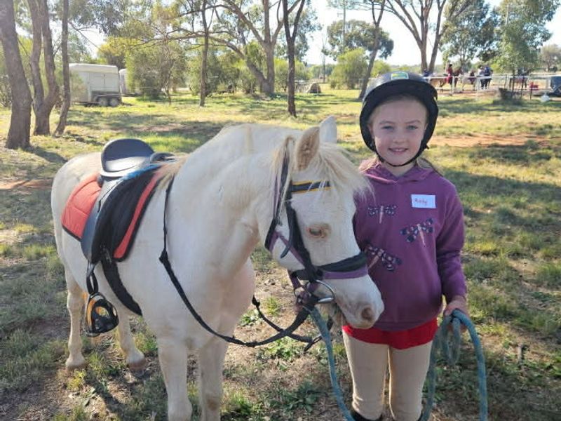 Snowflake is a sweet, friendly pony who loves attention and has a genuine willingness to please. He is a safe, responsible, well educated pony, suitable as a lead line or for a confident beginner looking to step up to their next pony. He has a lovely soft natural way of going, and a natural correct head carriage even with the smallest jockey on board. He is always first to the gate and will stand there all day with kids brushing and milling around him to do all those things kids love to do. The kids can do it all with him and all on their own with confidence. From catching, to saddling and then loading him on the float.