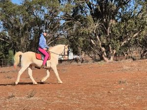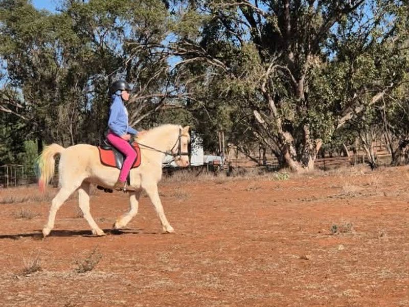 DisciplinesSnowflake is a stunning 11.3hh, 15yo Cremello gelding. This little man has been attending Pony club since he was 3yo. He has always been in a horsey home and is the most compliant, easy to manage pony, both on the ground and under saddle. He is just a pleasure to be around. He would suit Lead line/confident beginner/second pony. He is free moving, and has the best breaks you will ever find on any horse/pony. Just the slightest indication that you want to halt and he halts, give him the go signal and he will stay in that rhythm, in that gait, until told otherwise.