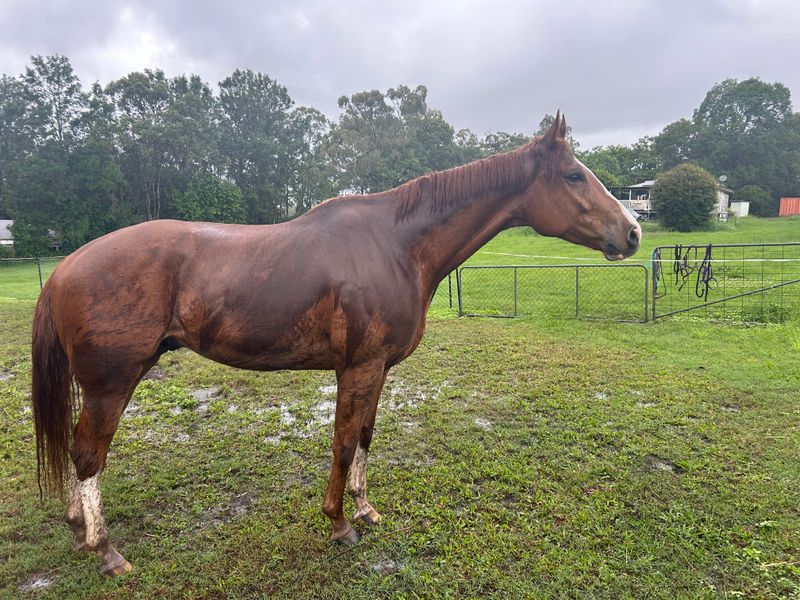 Fox is a very brave and honest horse. Such a gentleman on the ground and will do anything to please you. He is more woah than go and moves like a warmblood. Believe he would make any rider happy. Would suit and discipline but would strive in show jumping. He gets handled by my non-horsey family on the daily. In saying that he would need to go to an experienced home surrounded by other horses, as he is still very green. He has just started his retraining and has no nasties. He is now just slowly putting muscle on. Up to date with his hendra, 2in1, dental, farrier, worming and bodywork. Such a reluctant sale, and will only be going to a 5 Star home.