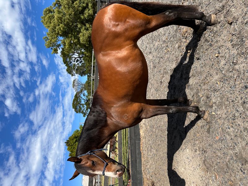 Eligible for newcomers, bombproof temperament, and loves the arena & trails. Ideal ladies or young rider mount.