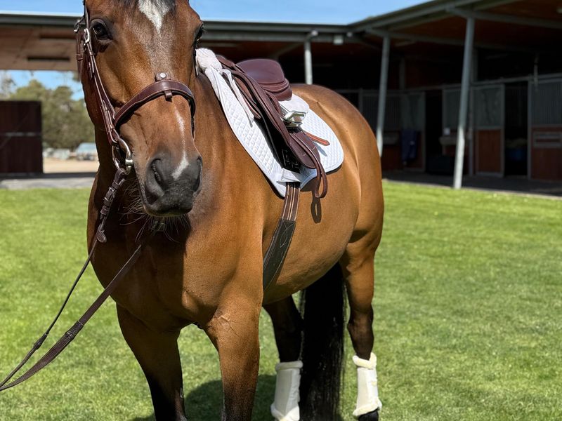 “Angel” is a breathtaking 16hh, 9yo Warmblood mare by Woody Toy Story, out of a Holsteiner mare (Arwen ter Brokeford). She combines elegance, athleticism, and a touch of sass; the complete package for the most diciplines