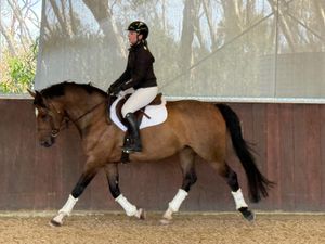 Angel is intelligent and has big, expressive movement that needs a rider who can confidently channel her energy and ride her forward. She can test the boundaries at times, but in the hands of a capable rider, that sass turns into forward brilliance.