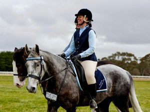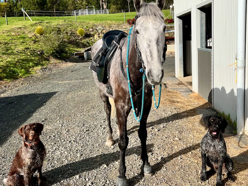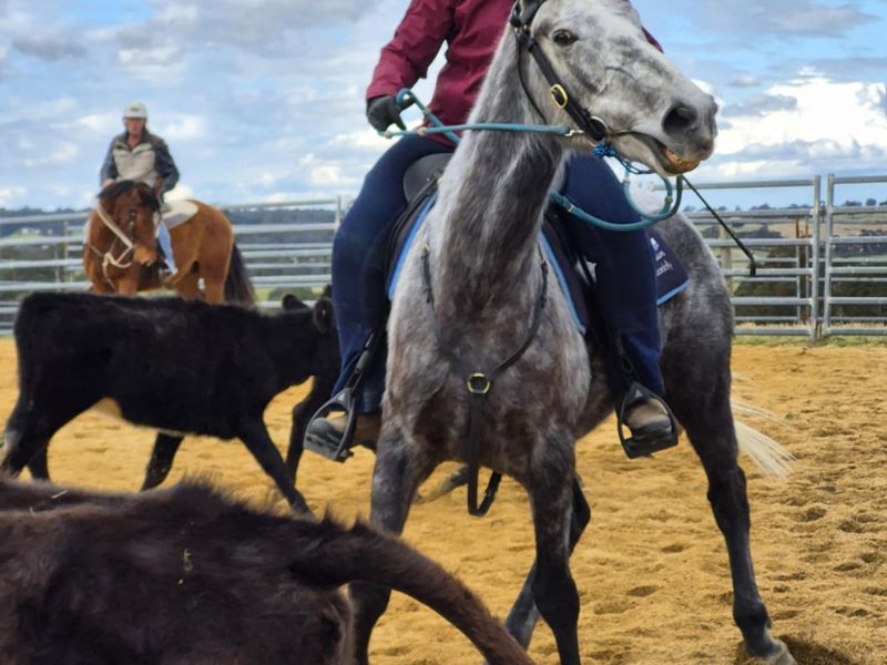 Swirly has competed at ag shows, HRCAV club level, mustered cattle, been extensively trail ridden and is a happy guy who enjoys a variety of work. He is non-reactive even when crazy dogs chase foxes in front of him! Swirly is super safe to ride out, down roads and across open paddocks. He is ridden bareback, with others, on his own and loves mustering.