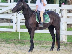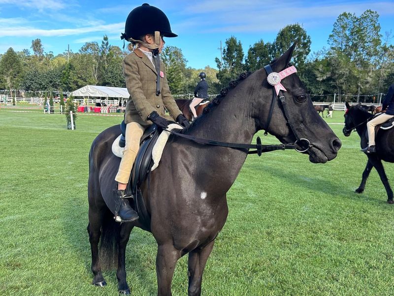 Cadbury would best be suited as a second pony due to her eagerness to win!! She is very competitive and flys around jumps, barrels and poles (although my daughter prefers to Trott around the jumps ) if you are looking for a safe and fun competitive pony Cadbury is your girl .