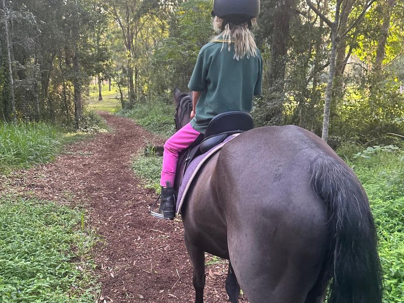 She has been there and done that from pony camps , pony club, Competitions , mustering , farm work, trail rides you name it . We recently did a 6 day cattle drive mustering 1700 head of cattle and Cadbury just goes and goes so not let her age fool you .