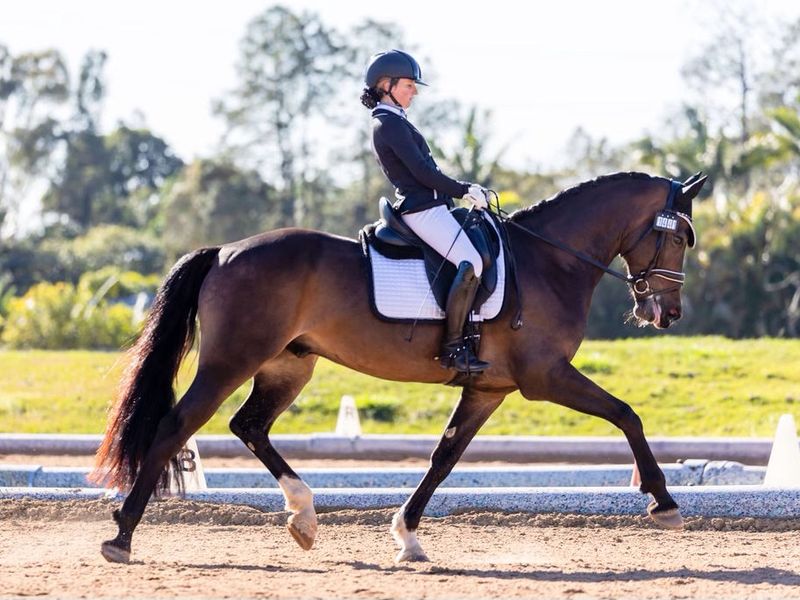 Cardi consistently scores 8s and 9s for his movement and expression. Judges love him โ and so will his next rider.
