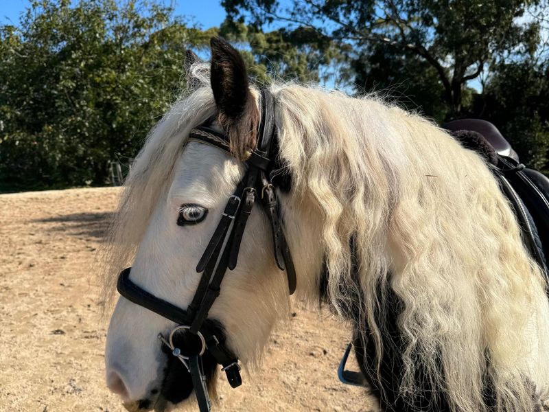 Hawkeye has the most impeccable temperament you could imagine and wise beyond his years . Broken in and going very kindly under saddle walk, trot, canter . Excellent mouth and breaks, very well behaved you wouldn’t think he has just begun his ridden life . An absolute gentleman to do everything with and handle is every way . His biggest problem is keeping him clean !!