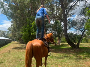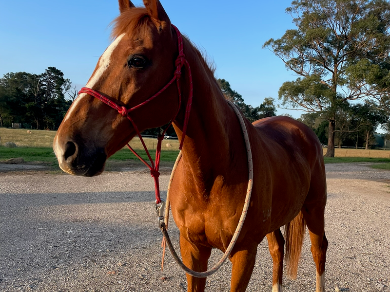 DisciplinesThe patriot (aka Patrick) beautiful 16.1 aprox alllrounder with lots of experience. Been there done that sort of horse. Currently being ridden at home jumping and trail riding. Would suit intermittent rider looking to go out and have fun or low level competition horse happily jumping 60 -70 cm. Can crack a whip off him good with cars bikes dogs kids. Can stand on him slide off his bum walk under him and he does not care.