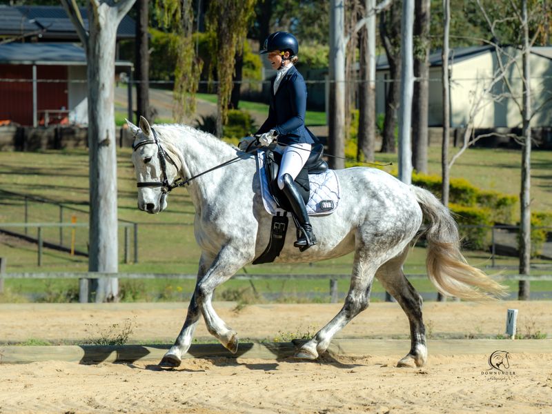 Shari is a 9yo, 16.2hh Percheron x Selle Français mare with a lovely temperament. She is quiet, kind, and very people-oriented, and enjoys being around other horses - this is great for competing! She is easy to handle and enjoys outings and competitions.