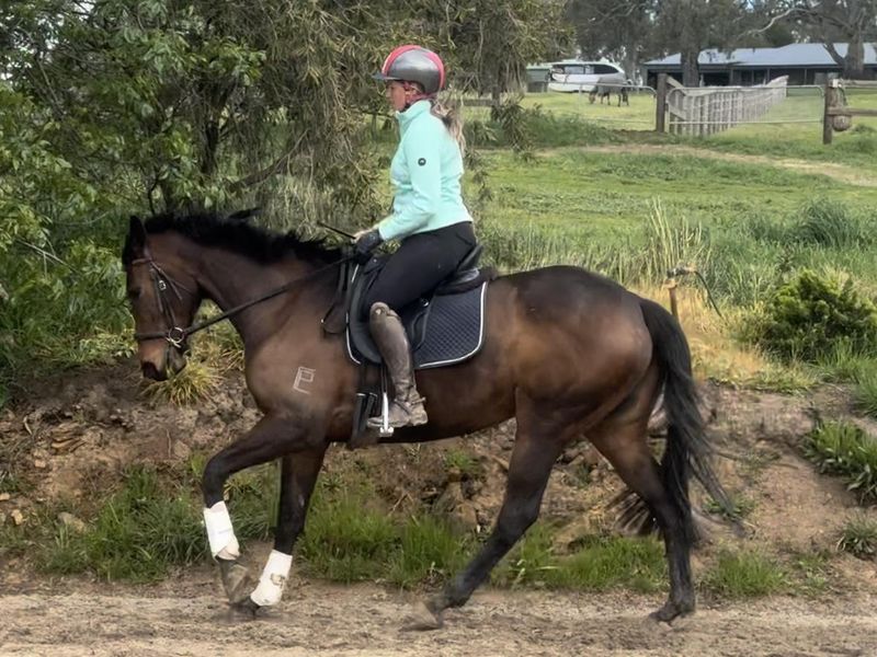 Lovely bay 7yo 16.1hh Tb Mare by Epaulette. Savvy is a very straightforward ride and always gives 110% every ride . She has previously evented ea80 in WA bold cross country and has a super jump on her . Absolutely loves jumping just sit and steer . Careful scopey and brave I absolutely love jumping her .