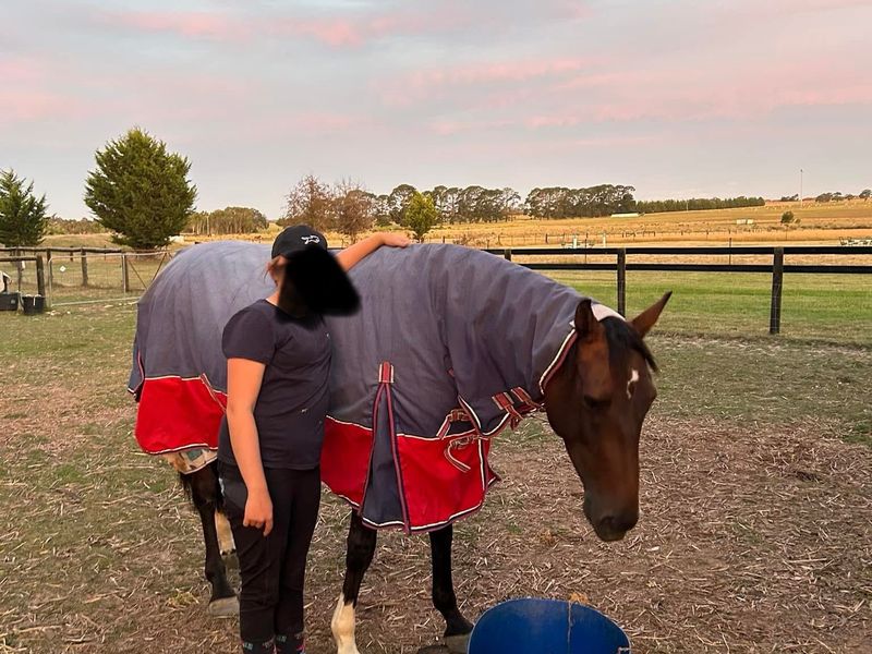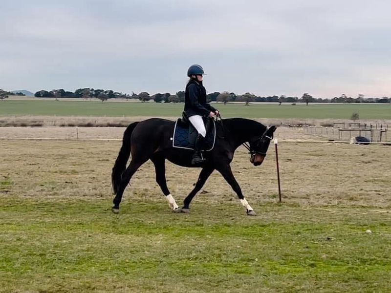 Very friendly smoochy mare who loves her person. Has competed in a couple of 95cm Showjumping Comps with previous owner. Purchased for my daughter as a dressage prospect but she doesn't love arena work.