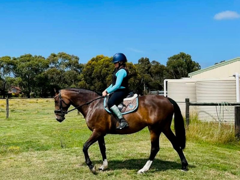 Ridden by a (nervous) child intermediate rider, been to pony club for outings & regular lessons with coach. 100% Connemara personality, very smart & learns very quickly, needs a bossy rider!