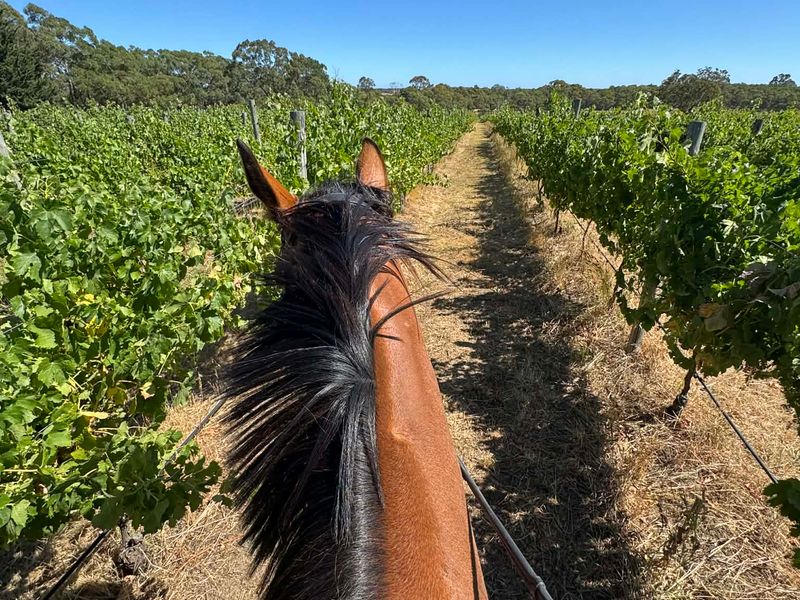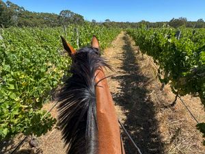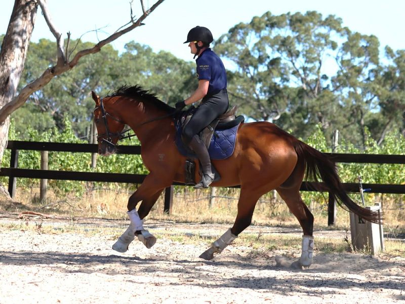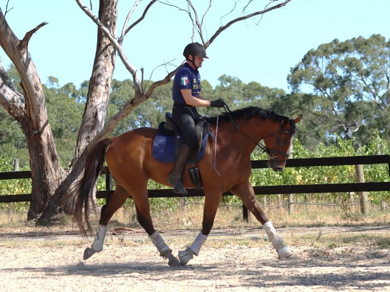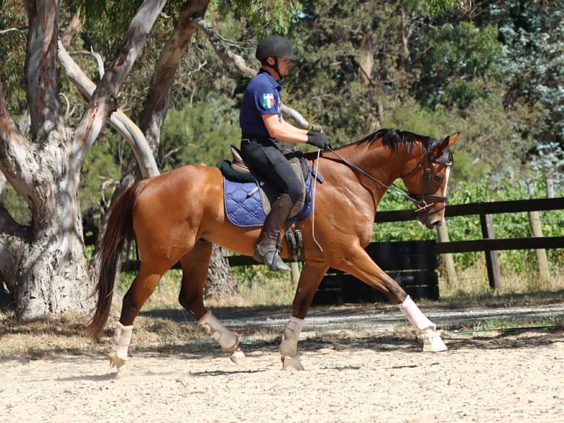 Been ridden out in the vines, in groups and on his own with no hassles. He has great paces and would exceed in the high levels of showing, eventing, jumping or just trail riding!