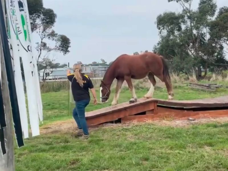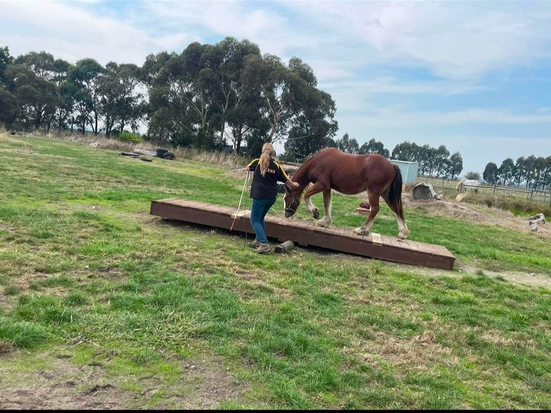 He has done many in hand clinics, did a few weeks at Knights Equestrian where he was a natural at liberty work, has been to urban trails and happily did all of the obstacles. Feet are trimmed regularly, teeth are all up to date as well as worming and tetanus etc.