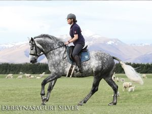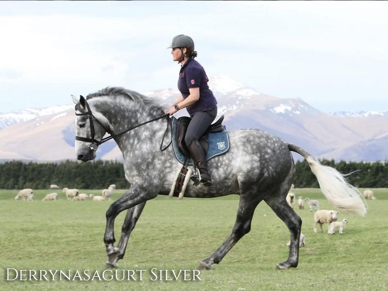 Derrynasagurt Silver was imported from Ireland to New Zealand by Tracy Crossan in 2021. Silver is a combination of top Class 1 breeding and is a very athletic, modern type. He stands at an impressive 170 cm and has fluid, expressive movement to match his long legs.